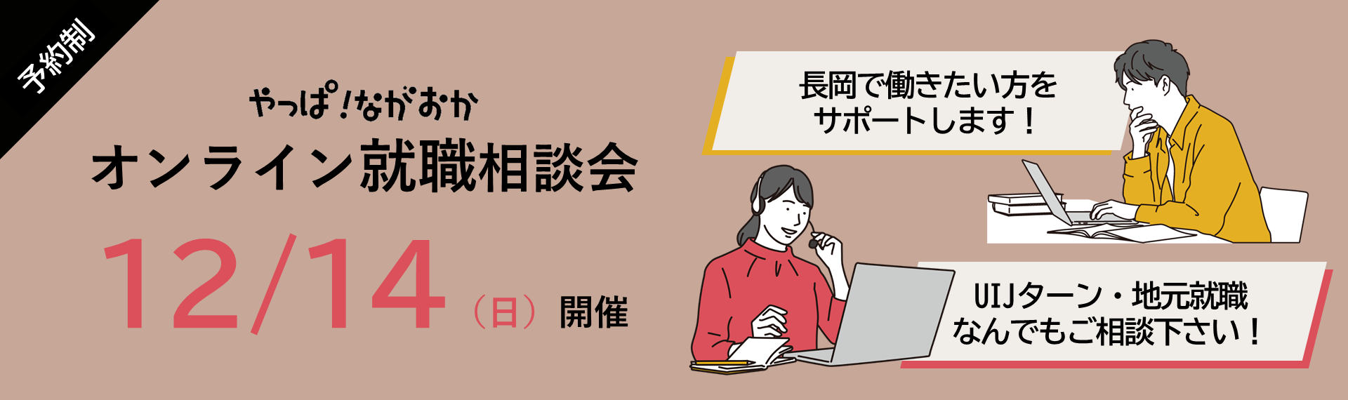- 2025年11月06日 お知らせ イベント情報 12/14(日)「やっぱ!ながおか オンライン就職相談会」開催 決定!
