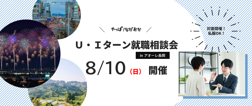 UIターン就職説明会8/10(日)開催 in アオーレ長岡 対面開催 私服OK